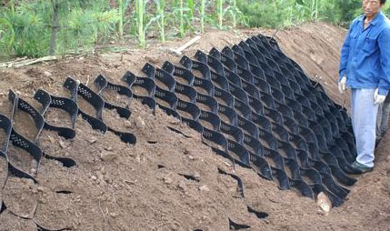 土工格室是由高強度的HDPE或PP寬帶或土工帶,經(jīng)過焊接(或扣接)而形成的蜂窩狀立體網(wǎng)格結(jié)構(gòu)。它伸縮自如,運輸時可縮疊起來,使用時張開并充填土石或混凝土,構(gòu)成具有強大側(cè)向限制和大剛度的結(jié)構(gòu)體。